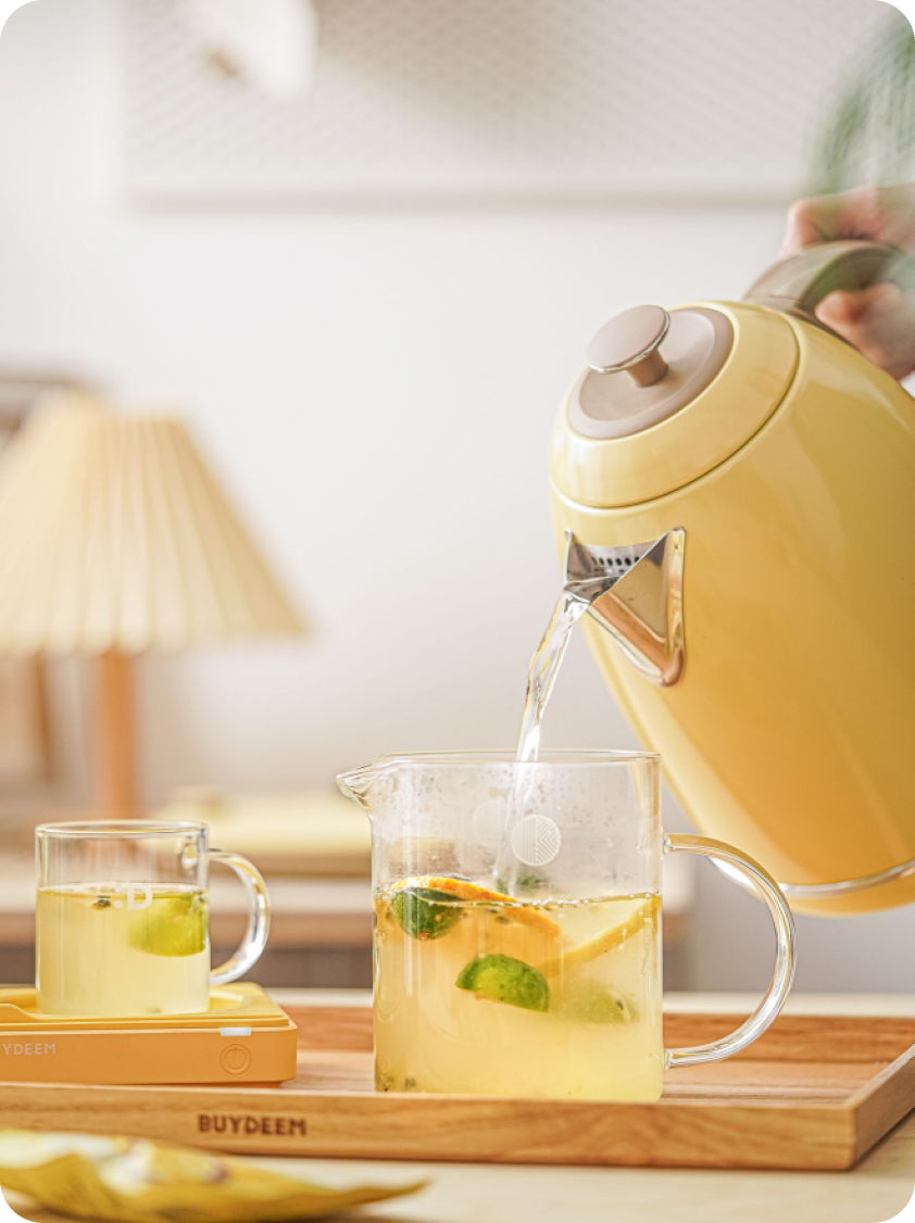 自动保温:在 212℉ 下将水烧开后,水壶会自动维持 115℉ 的温度 12 小时。