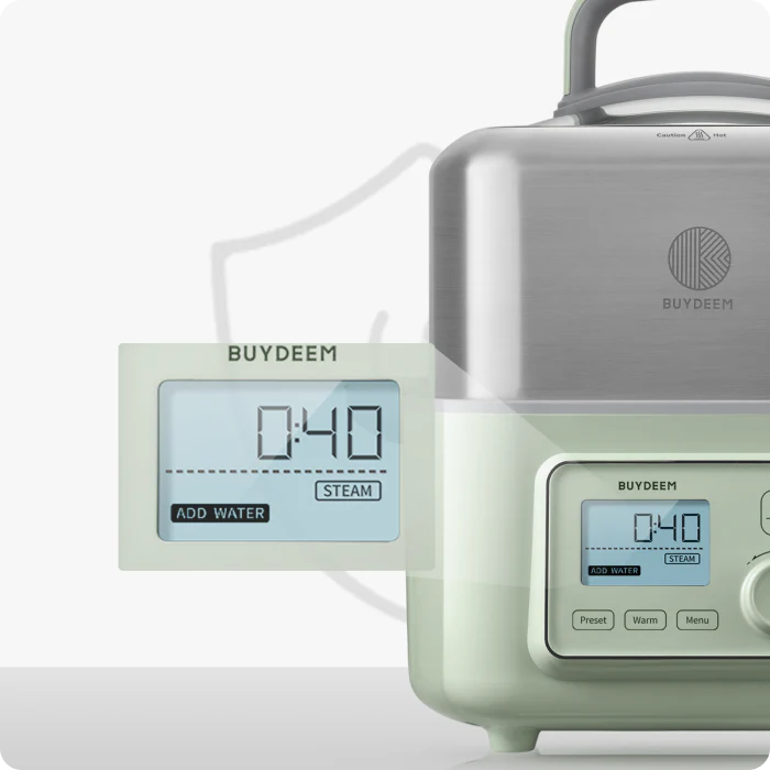 低水位时,蒸锅将暂停运行并提示加水;没水时,蒸锅将自动断电,拒绝空烧糊锅。