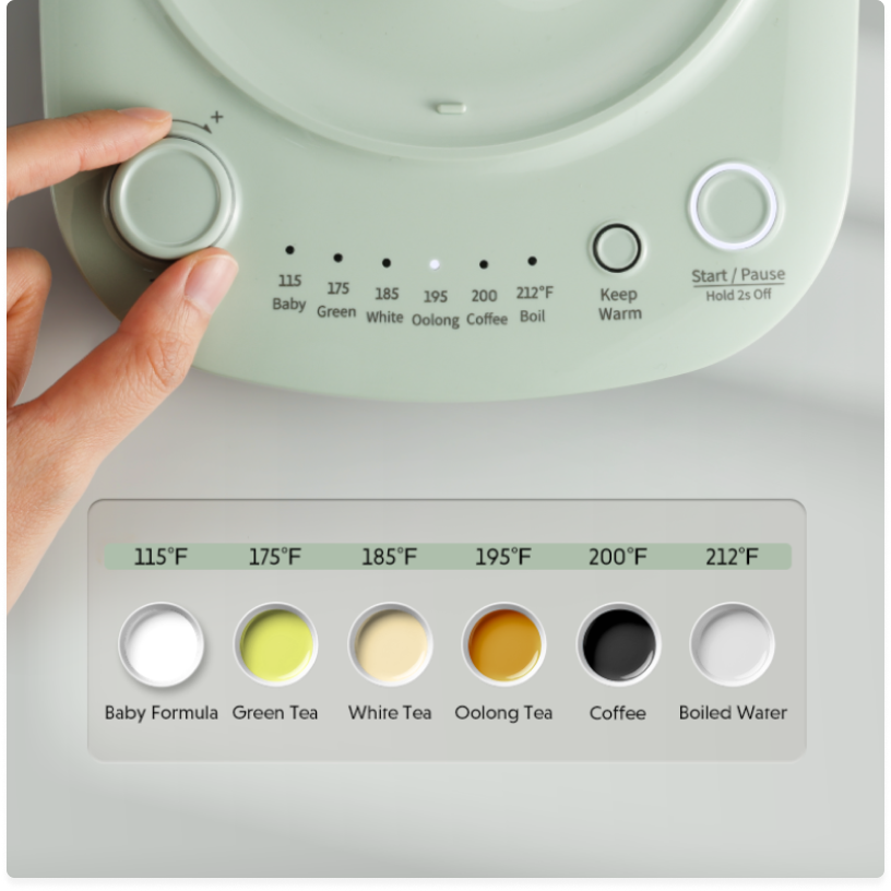 自动保温:在 212℉ 下将水烧开后,水壶会自动维持 115℉ 的温度 12 小时。