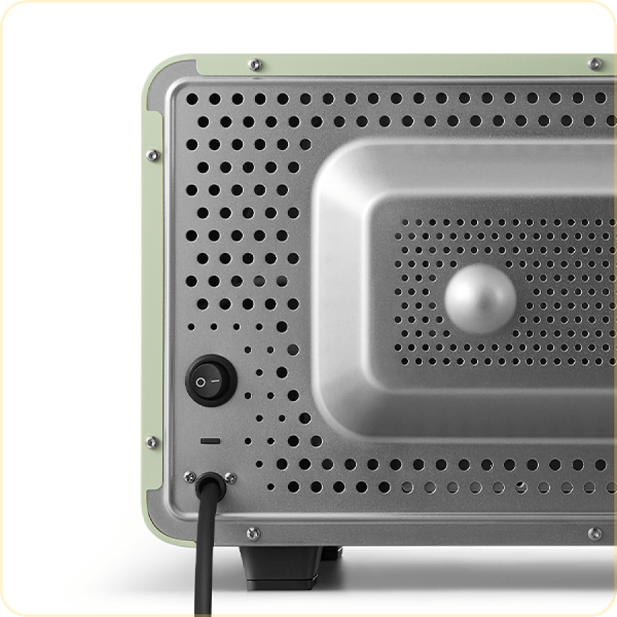 背面的独立电源按钮提供了一种安全、简单的方式来打开和关闭烤箱。一键断电,节能放心。